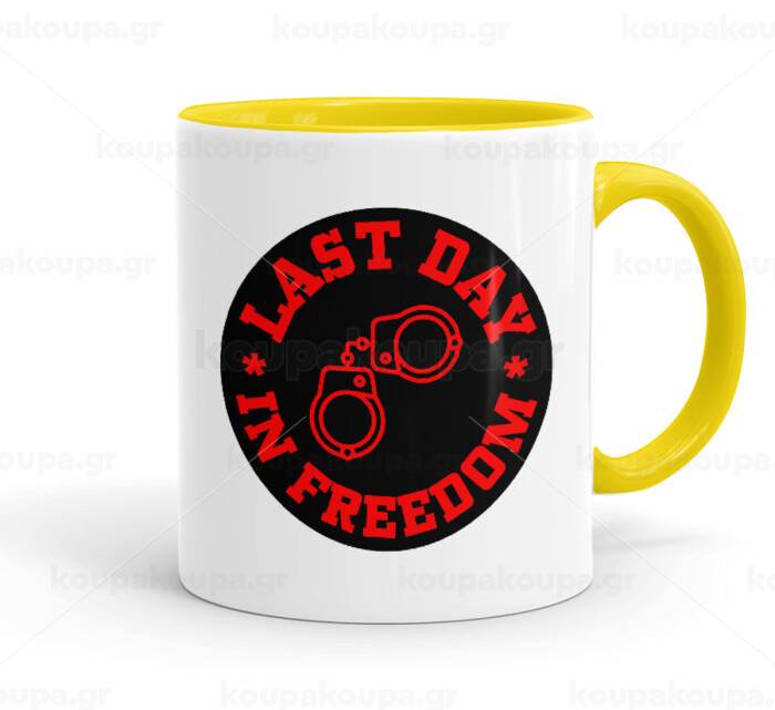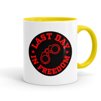 Last day in freedom, Κούπα χρωματιστή κίτρινη, κεραμική, 330ml