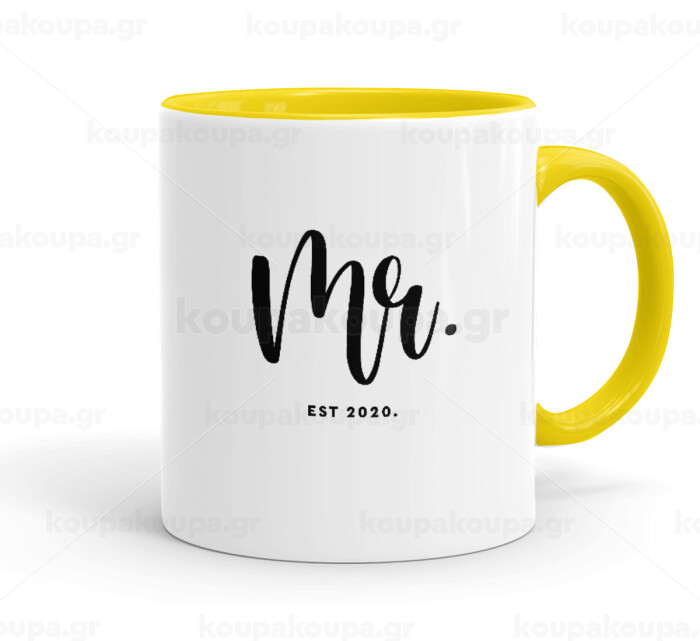 Mr & Mrs (Mr), Κούπα χρωματιστή κίτρινη, κεραμική, 330ml