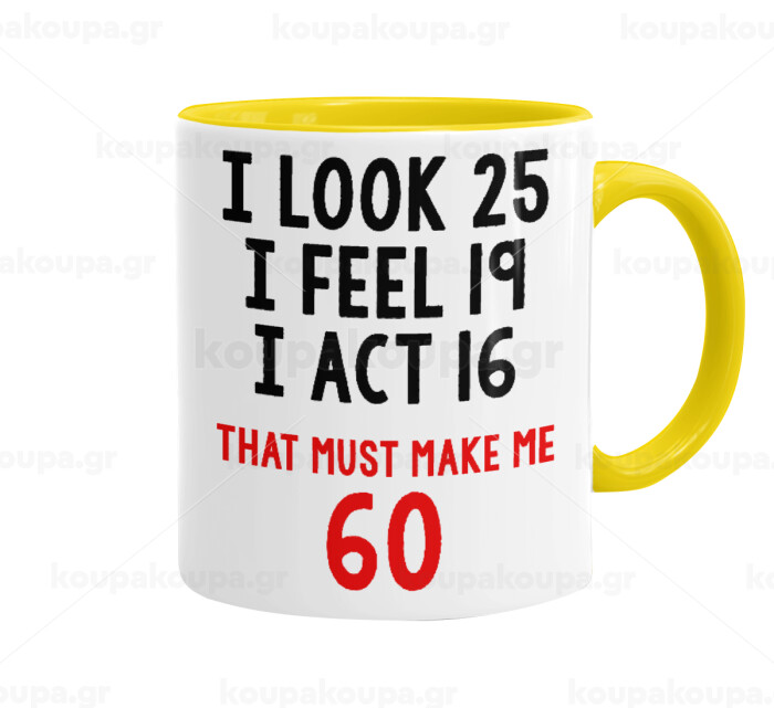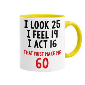 I look, i feel, i act..., Κούπα χρωματιστή κίτρινη, κεραμική, 330ml