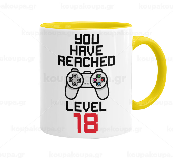 You have Reached level AGE, Κούπα χρωματιστή κίτρινη, κεραμική, 330ml