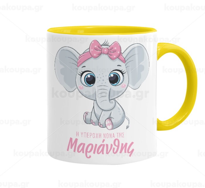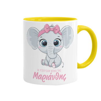 Η νονά μου, ελεφαντάκι ροζ, Κούπα χρωματιστή κίτρινη, κεραμική, 330ml