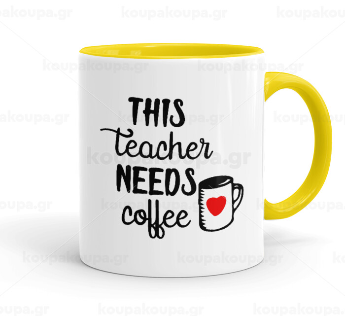 Τhis teacher needs coffee, Κούπα χρωματιστή κίτρινη, κεραμική, 330ml
