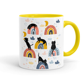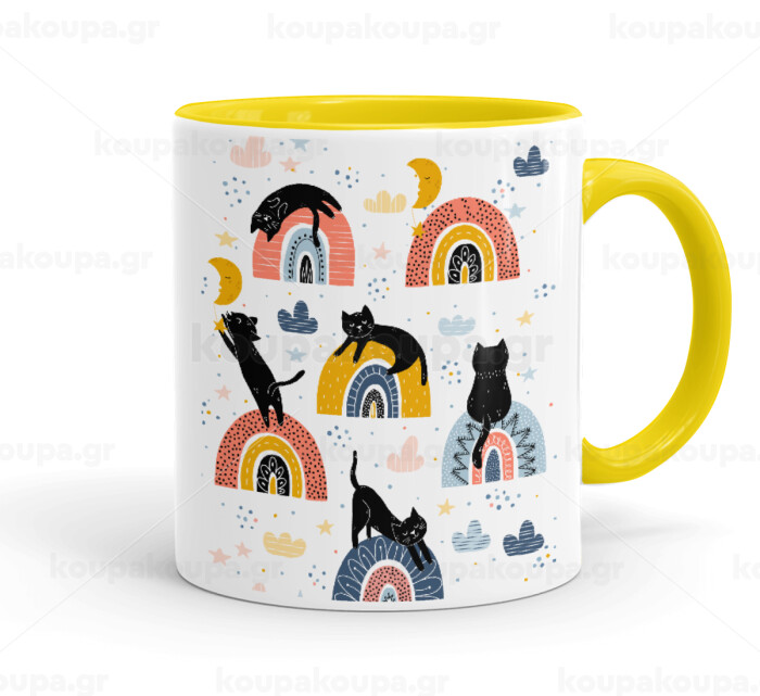 Γατούλες, Κούπα χρωματιστή κίτρινη, κεραμική, 330ml