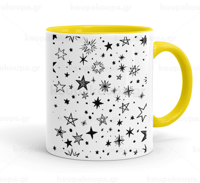 Doodle Stars, Κούπα χρωματιστή κίτρινη, κεραμική, 330ml