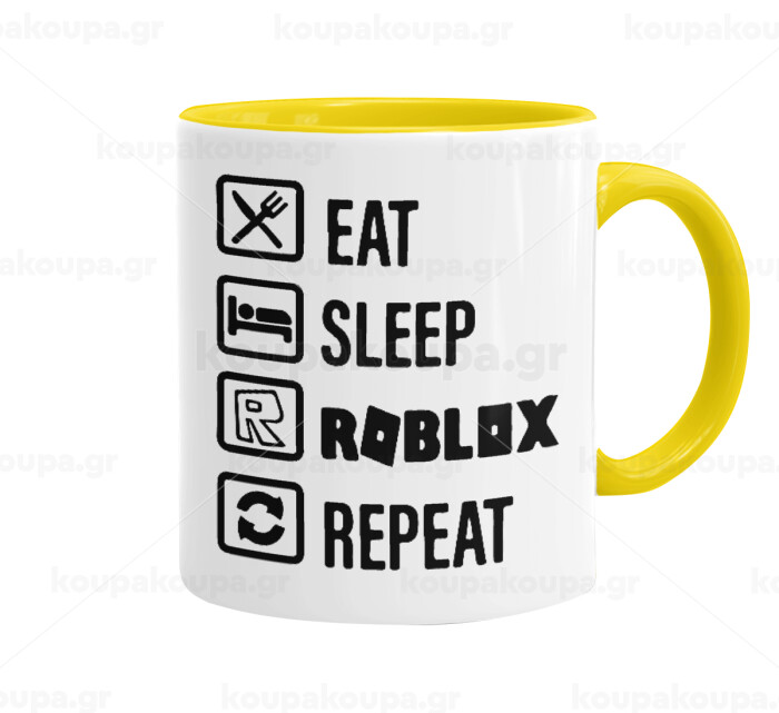 Eat, Sleep, Roblox, Repeat, Κούπα χρωματιστή κίτρινη, κεραμική, 330ml