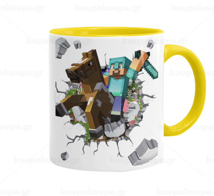Minecraft brick, Κούπα χρωματιστή κίτρινη, κεραμική, 330ml