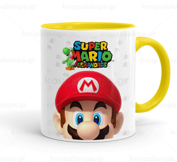 Super mario head, Κούπα χρωματιστή κίτρινη, κεραμική, 330ml