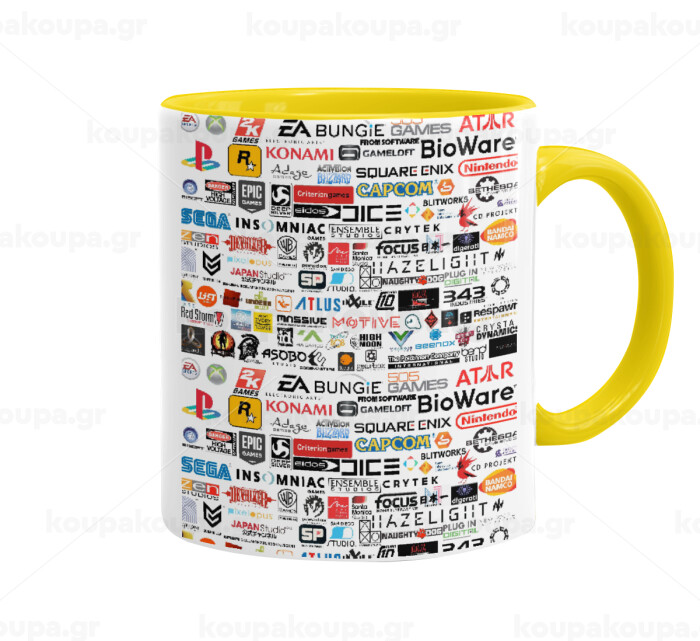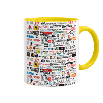 Video Game Studio Logos, Κούπα χρωματιστή κίτρινη, κεραμική, 330ml