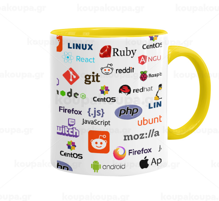 Tech logos, Κούπα χρωματιστή κίτρινη, κεραμική, 330ml