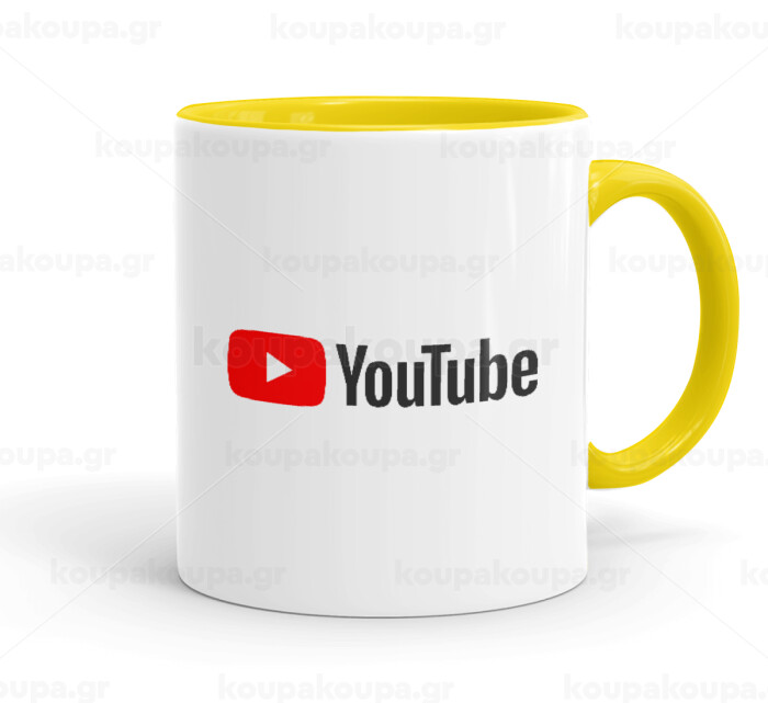 Youtube, Κούπα χρωματιστή κίτρινη, κεραμική, 330ml