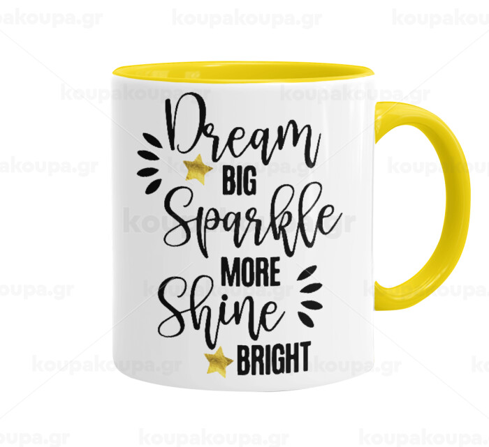 Dream big, Sparkle more, Shine bright, Κούπα χρωματιστή κίτρινη, κεραμική, 330ml