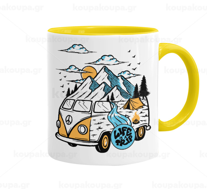 Life is a trip, Κούπα χρωματιστή κίτρινη, κεραμική, 330ml