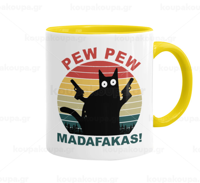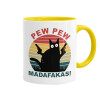 PEW PEW madafakas, Κούπα χρωματιστή κίτρινη, κεραμική, 330ml