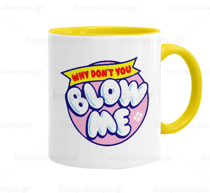 Why Don't You Blow Me Funny, Κούπα χρωματιστή κίτρινη, κεραμική, 330ml