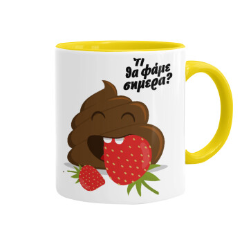 Τι θα φάμε σημερα???, Κούπα χρωματιστή κίτρινη, κεραμική, 330ml