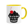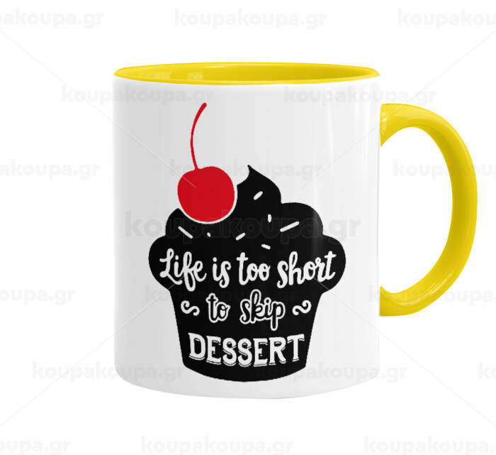 Life is too short, to skip Dessert, Κούπα χρωματιστή κίτρινη, κεραμική, 330ml