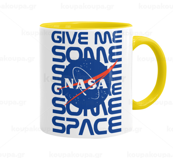 NASA give me some space, Κούπα χρωματιστή κίτρινη, κεραμική, 330ml