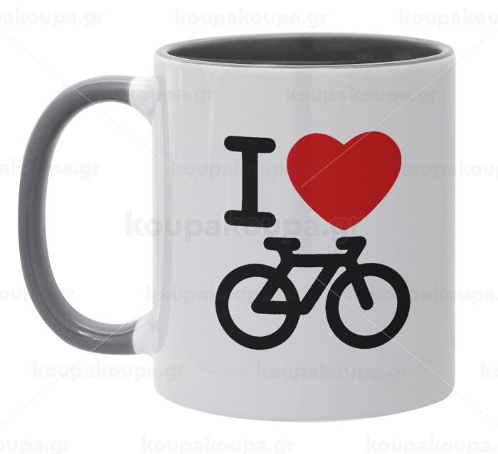 I love Bike, Κούπα χρωματιστή γκρι, κεραμική, 330ml
