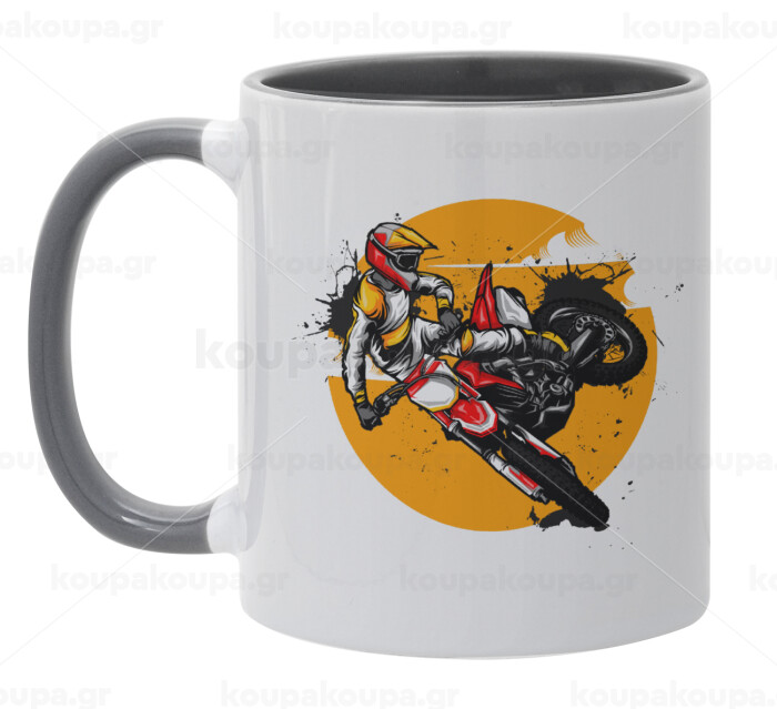 Motocross, Κούπα χρωματιστή γκρι, κεραμική, 330ml
