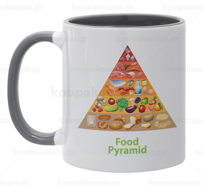 Διατροφική πυραμίδα, Κούπα χρωματιστή γκρι, κεραμική, 330ml