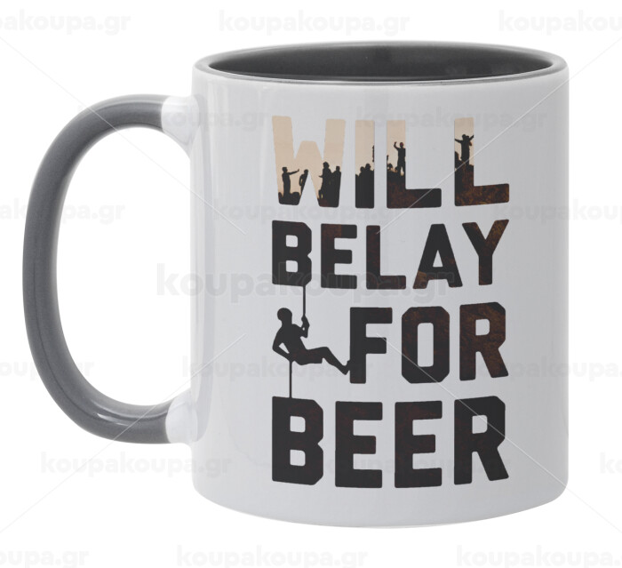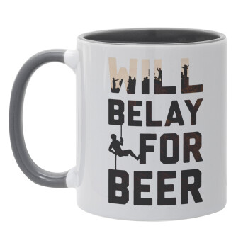 Will Belay For Beer, Κούπα χρωματιστή γκρι, κεραμική, 330ml