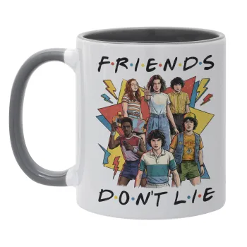 Friends Dont Lie, Stranger Things, Κούπα χρωματιστή γκρι, κεραμική, 330ml