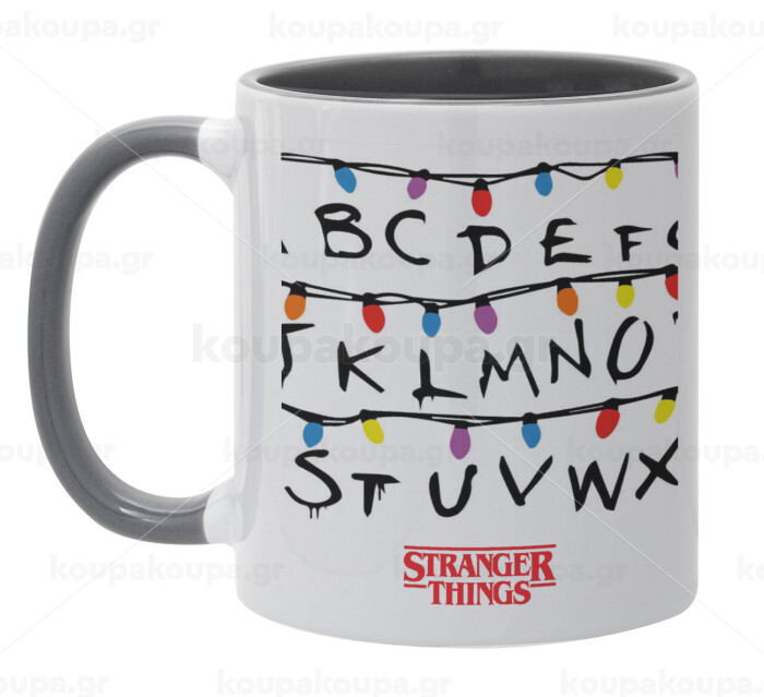 Stranger Things ABC, Κούπα χρωματιστή γκρι, κεραμική, 330ml