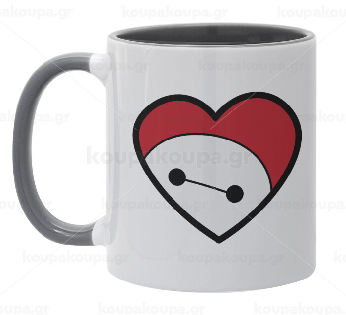 Baymax heart, Κούπα χρωματιστή γκρι, κεραμική, 330ml
