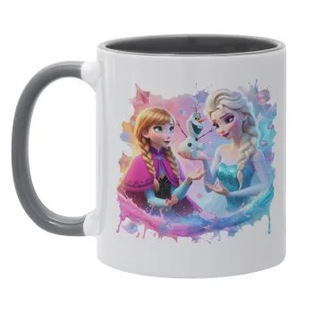 Έλσα & Άννα, Κούπα χρωματιστή γκρι, κεραμική, 330ml