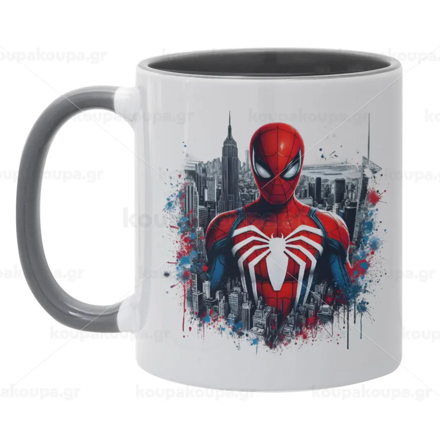Spiderman City, Κούπα χρωματιστή γκρι, κεραμική, 330ml
