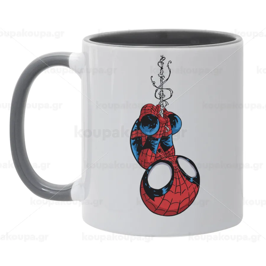 Spiderman upside down, Κούπα χρωματιστή γκρι, κεραμική, 330ml