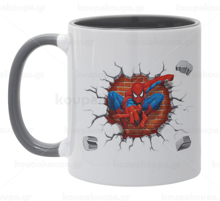 Spiderman wall, Κούπα χρωματιστή γκρι, κεραμική, 330ml