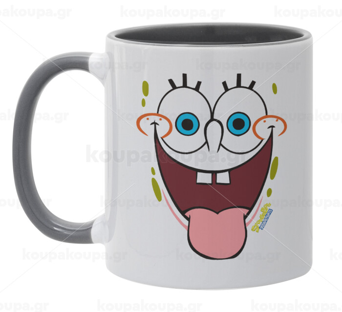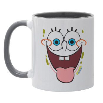 Μπομπ Σφουγγαράκης χαμόγελο, Κούπα χρωματιστή γκρι, κεραμική, 330ml