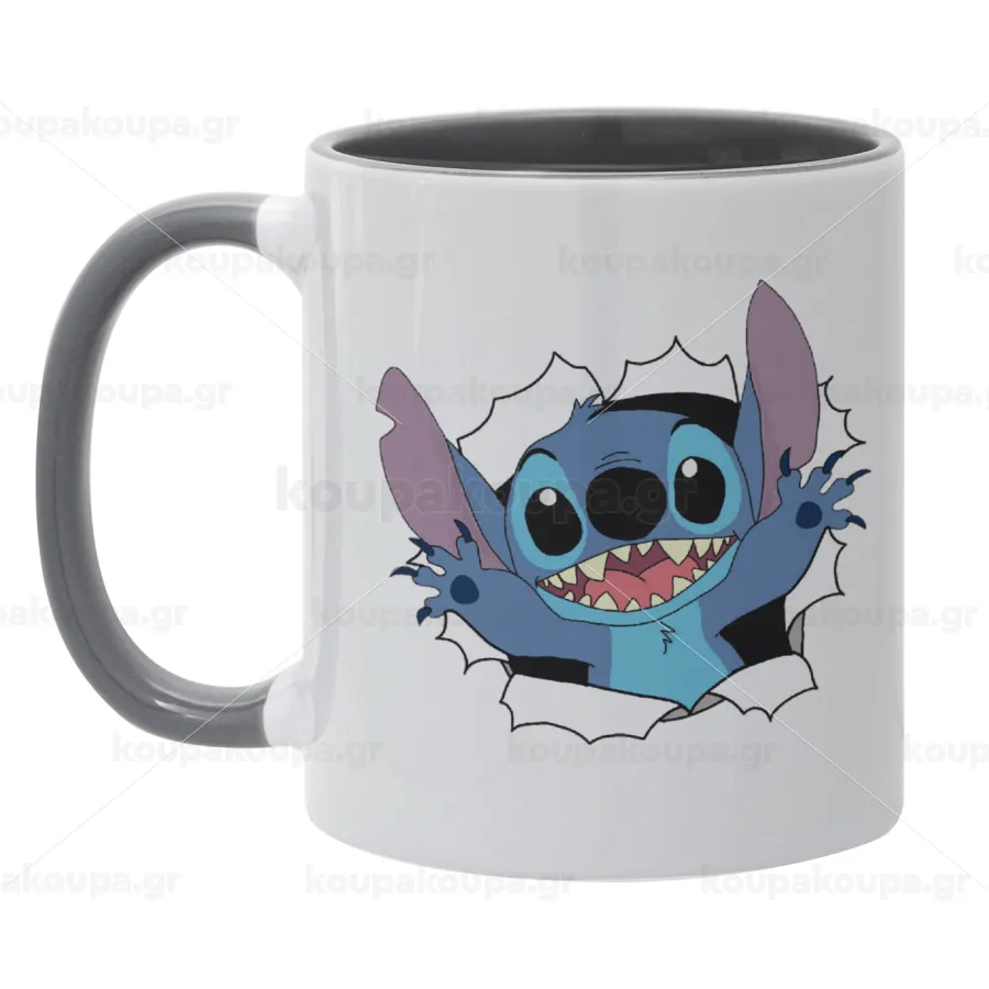 Stitch hello!!!, Κούπα χρωματιστή γκρι, κεραμική, 330ml