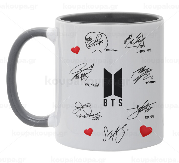 BTS signatures, Κούπα χρωματιστή γκρι, κεραμική, 330ml