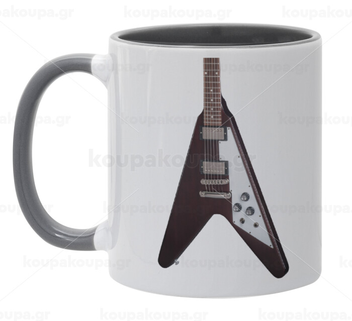 Guitar flying V, Κούπα χρωματιστή γκρι, κεραμική, 330ml