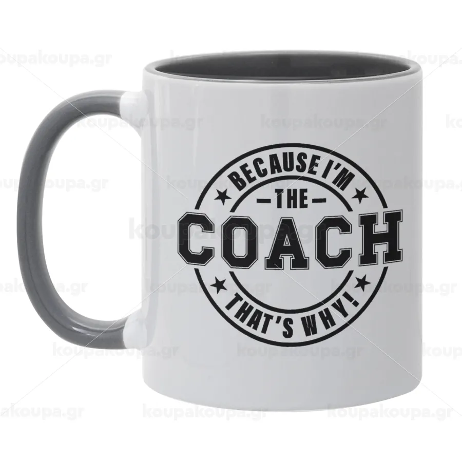 Because i'm the Coach, Κούπα χρωματιστή γκρι, κεραμική, 330ml