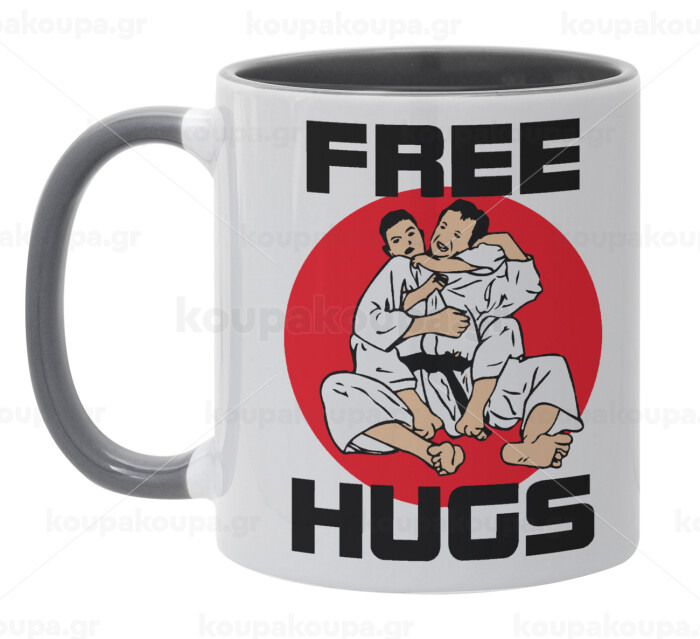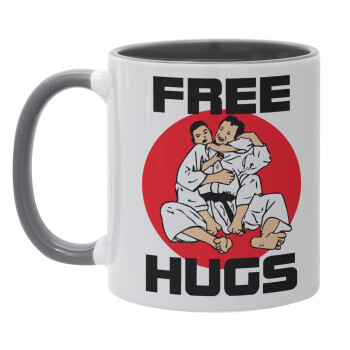 JUDO free hugs, Κούπα χρωματιστή γκρι, κεραμική, 330ml