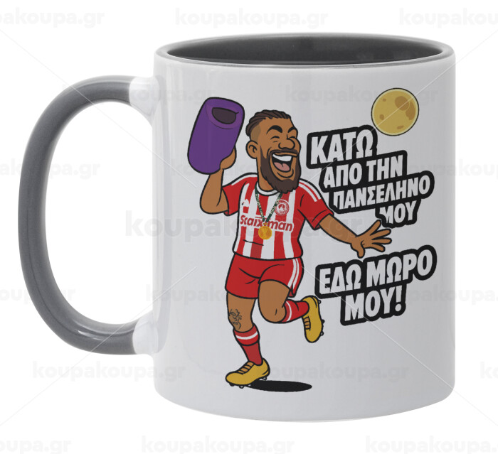 Ροντινέι, "ΚΑΤΩ ΑΠΟ ΤΗΝ ΠΑΝΣΕΛΗΝΟ ΜΟΥ!", Κούπα χρωματιστή γκρι, κεραμική, 330ml