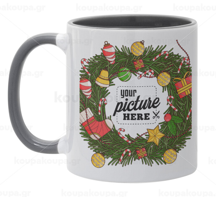 PHOTO Christmas twitch, Κούπα χρωματιστή γκρι, κεραμική, 330ml