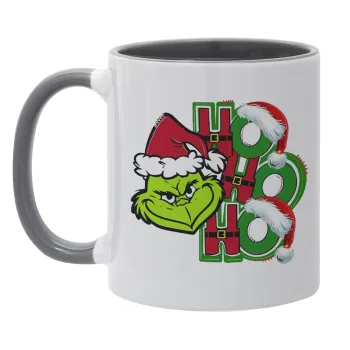 Grinch ho ho ho, Κούπα χρωματιστή γκρι, κεραμική, 330ml