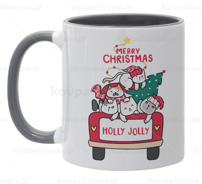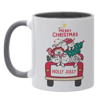 Merry Christmas cats in car, Κούπα χρωματιστή γκρι, κεραμική, 330ml