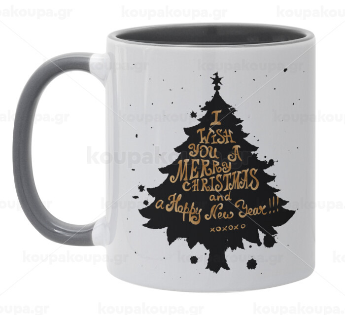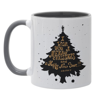 Tree, i wish you a merry christmas and a Happy New Year!!! xoxoxo, Κούπα χρωματιστή γκρι, κεραμική, 330ml