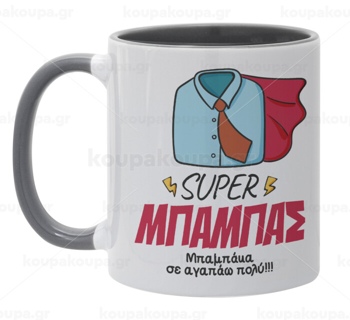SUPER ΜΠΑΜΠΑΣ, Κούπα χρωματιστή γκρι, κεραμική, 330ml