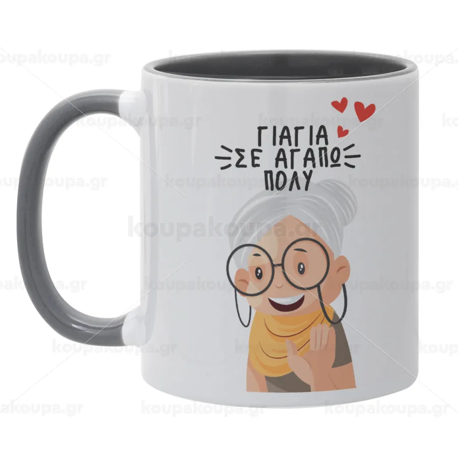 Γιαγιά σε αγαπώ πολύ!, Κούπα χρωματιστή γκρι, κεραμική, 330ml