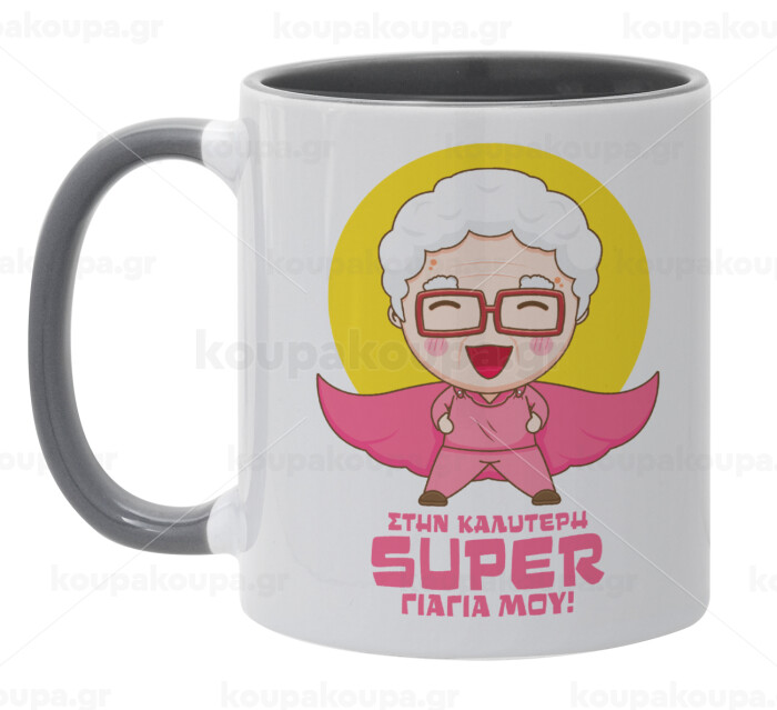Στην καλύτερη Super γιαγιά μου!, Κούπα χρωματιστή γκρι, κεραμική, 330ml