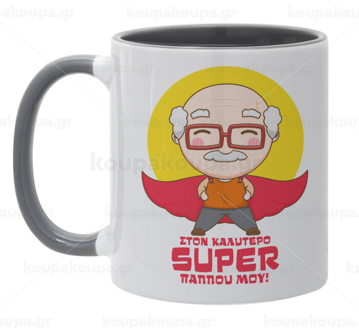 Στον καλύτερο Super παππού μου!, Κούπα χρωματιστή γκρι, κεραμική, 330ml