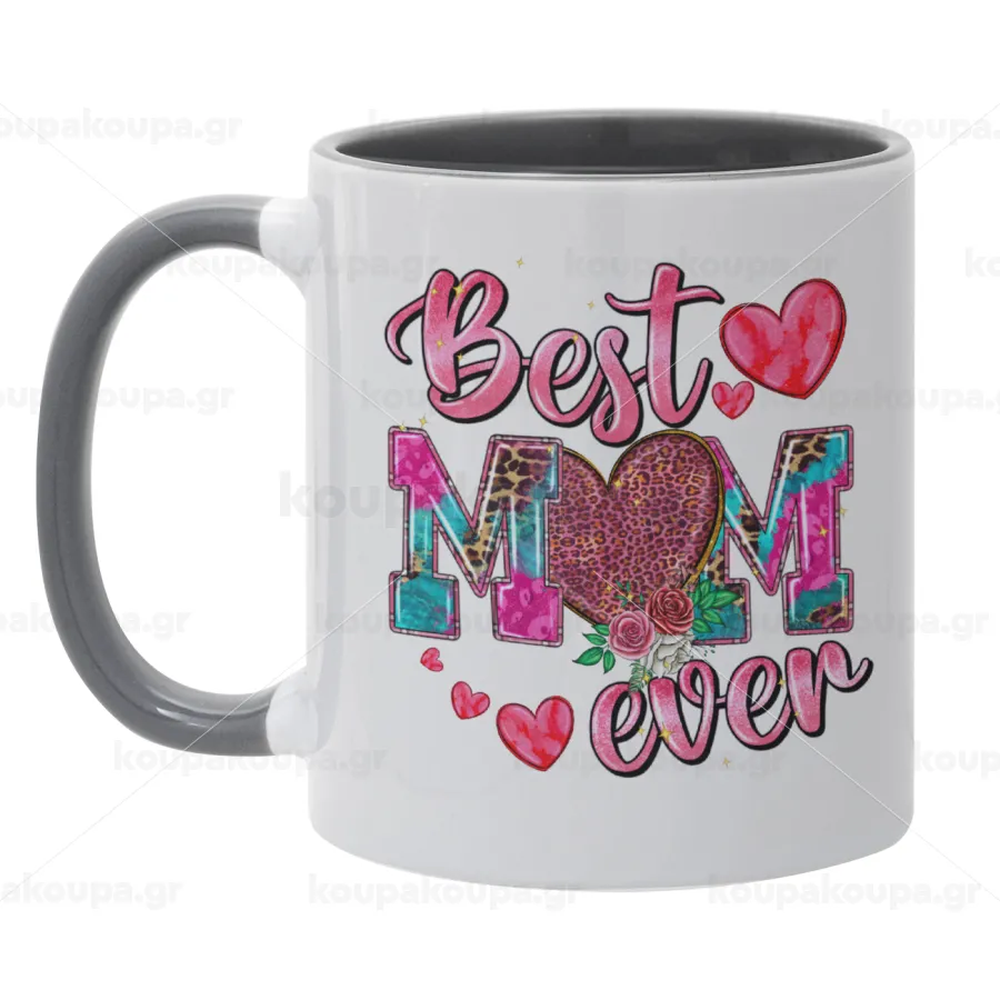 Best mom ever Mother's Day pink, Κούπα χρωματιστή γκρι, κεραμική, 330ml