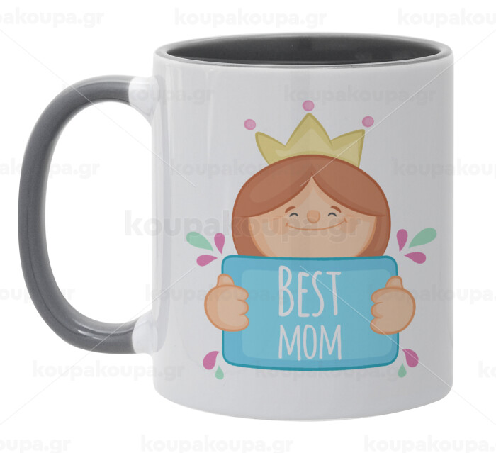 Best mom Princess, Κούπα χρωματιστή γκρι, κεραμική, 330ml
