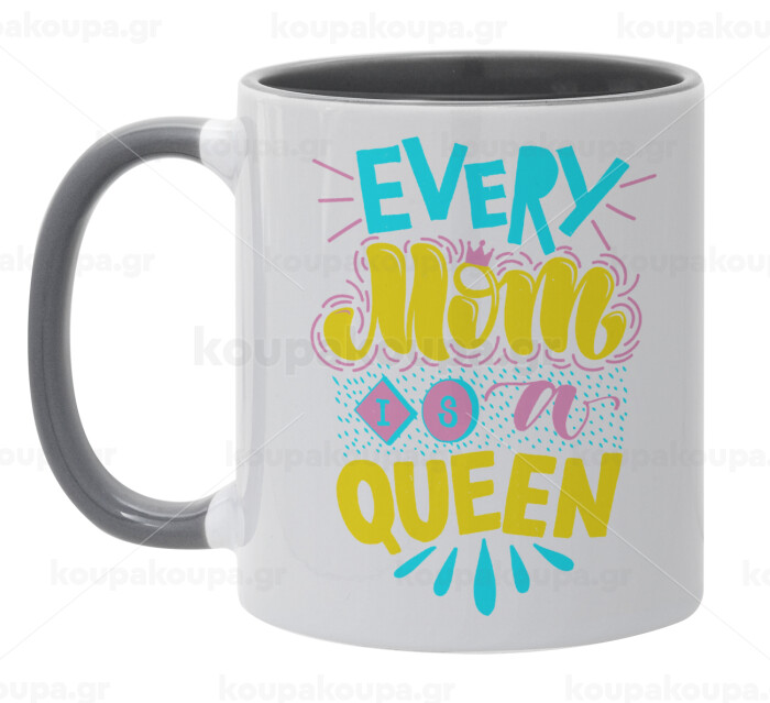 Every mom is a Queen, Κούπα χρωματιστή γκρι, κεραμική, 330ml